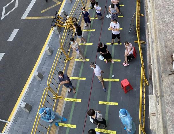 主动接受采样,有序排队参加检测,做到应检尽检、不漏一人,共同守卫生命健康、守护家园平安,医护人员、与社区工作人员、志愿者,分工合作,居民保持一米线间隔,令人想到,有一种感情,叫共渡难关,有一种守护,叫并肩作战,有一种责任,叫勇往无前,看了人们扫码登记、张嘴配合采样、让整个核酸采样过程,有温度、也更有效率。