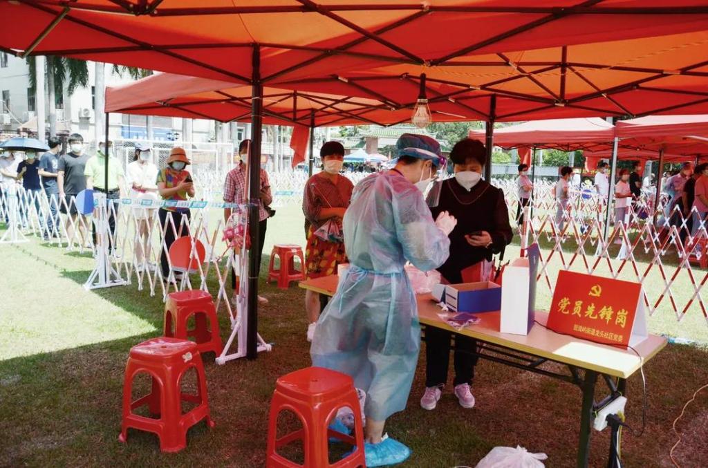厦门市全员《新冠病毒》核酸检测,规定若是小区有一例被隔离,那小区人员,每天都需要核酸检测,记者体会到天光未亮,社区工作者、志愿者、医护人员等,就已提前开始布置,核酸采样现场所需物品都已到位,令我们感佩不已。