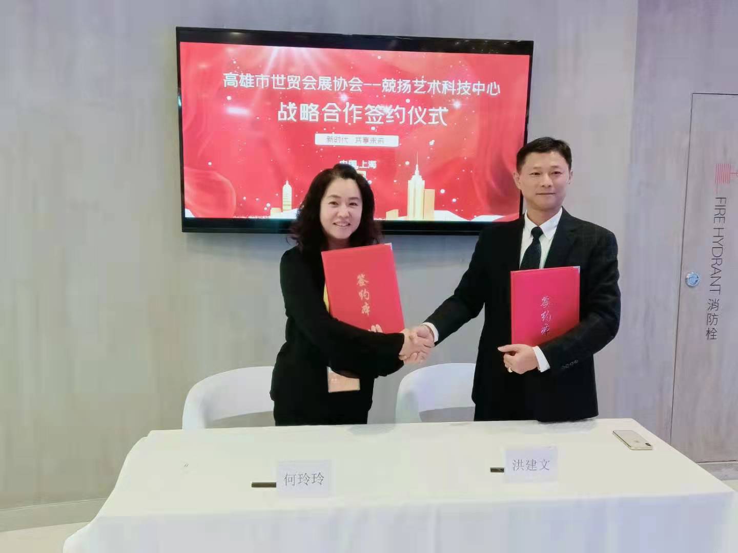 高雄市世貿會展協會理事長何玲玲(左),與綠地上海全球商品貿易港代表方洪建文(右)。高世貿/提供