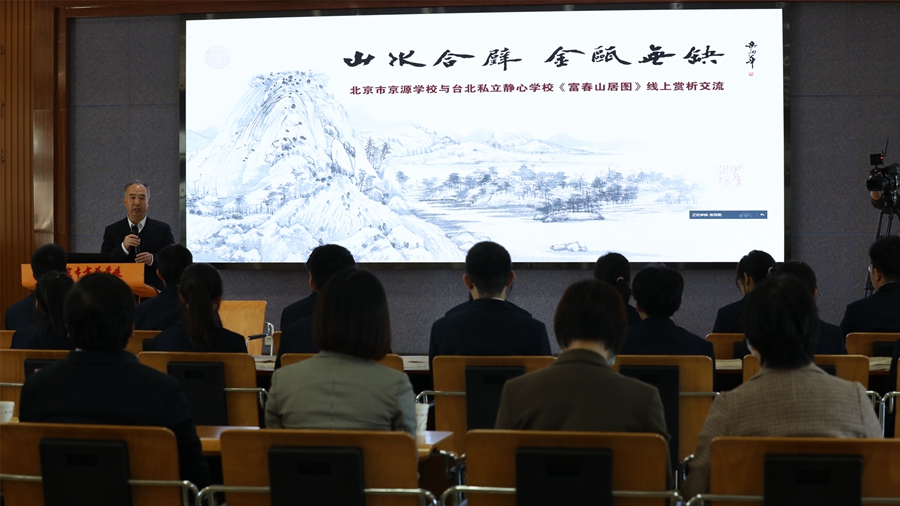 台灣網11月10日訊(記者 曹帥兵 符海川)11月10日,“山水合璧金甌無缺:兩岸師生‘雲端’共賞《富春山居圖》”活動在北京市京源學校舉行。京源學校和臺北市私立靜心學校的學生在網路“雲端”相會,共同賞鑒中國傳世名畫《富春山居圖》,感悟中華文脈延綿不斷的凝聚力量。