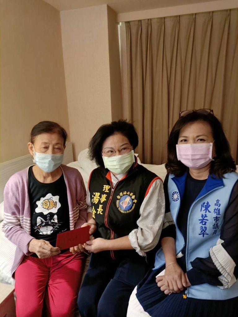 11月16日上午10点多,「社团法人台湾妇女联合会」理事长汤金华、跟工作干部,及台商邱慈意的儿子邱强森,在市议员陈若翠陪同见证下,再度前往城中城,慰问城中城往生的江西周氏、福清吴氏台湾家属、伤者南京陈玉华的儿子,都个别致赠慰问金,至此,高雄市「城中城」火灾捐款慰问金,全部送出了,非常感谢市议员陈若翠、和台商邱慈意对陆配的关怀、与照顾。