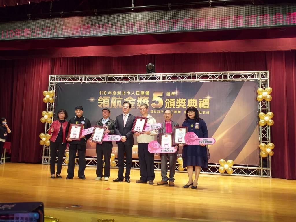 新北市政府自106年起開辦人民團體「領航金獎」表彰積極服務社會、貢獻人群的優質團體,至今(110)年邁入五週年,並已成為新北在地社團的年度盛事。獲獎團體數從106年的142家,到今年成長至265家,經統計獲獎團體年度服務超過70萬人次、捐款捐物總值達 2.2億元。