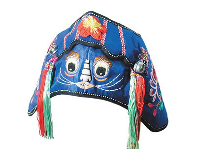 民間美術的造型形式是精神主導下的産物。任何載體的外在形式不外乎形、色、質的組合重構,這些物化因素之外的精神追求,才是“虎”形象的最高表現形式。民間美術中的虎,並不是指具體的哪一種屬科的生物,而是超越虎形象的超然物外的意識再造形象。還以虎頭帽為例,對老虎的造型進行創造性的添加,比如:把鯉魚、石榴、蓮花、壽桃、瓜果、蜻蜓、喜鵲、公雞等添加到老虎身上,並不受客觀物象的拘束,可見老百姓對虎形象的運用非常靈活。虎的形象也因此成為具有視覺衝擊力的“吉祥符號聚寶盆”。