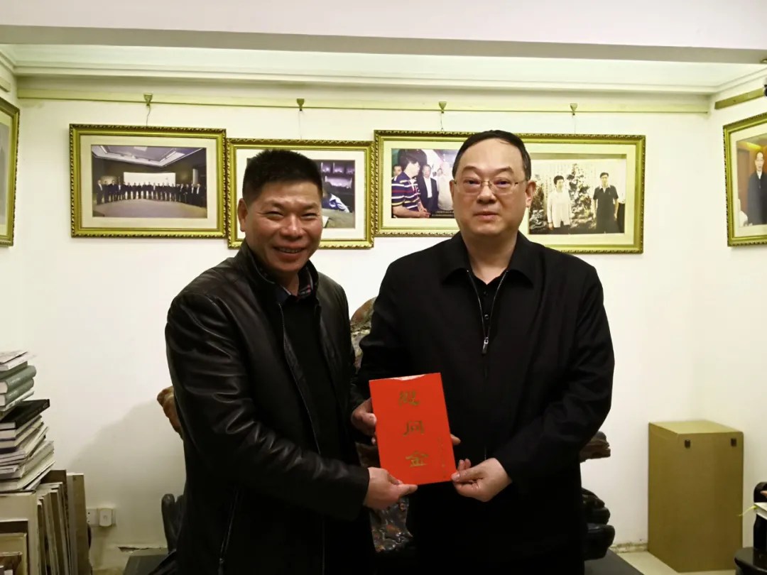 新春佳節即將到來之際,福建省人大常委會副主任、民進福建省委會主委嚴可仕(圖右)慰問福建技術師範學院工藝美術研究院院長、福州市壽山石行業協會會長、中國工藝美術大師陳禮忠(左)。