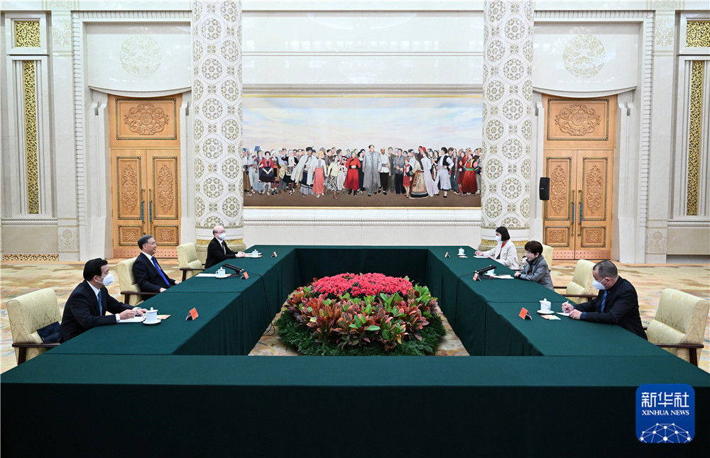 2月5日,中共中央政治局常委、全國政協主席汪洋在北京會見前來出席北京冬奧會開幕式的中國國民黨前主席洪秀柱,轉達習近平總書記對洪秀柱和廣大臺灣同胞的新春祝福。新華社記者 張領 攝