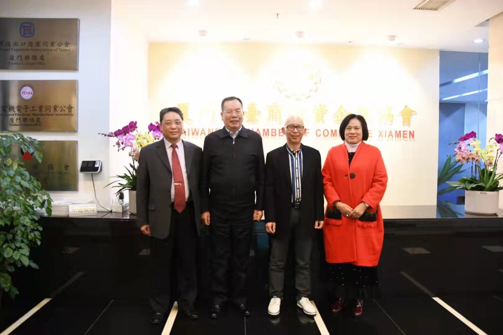 廈門市泉州商會會長兼泉商會兩岸融合促進會主任許國鋒, 2月18日前往廈門台商會館,拜訪全國臺灣同胞投資企業聯誼會常務副會長、廈門市台商投資企業協會會長吳家瑩。隨行的還有廈門泉州商會兩岸融合促進會秘書長、兩岸大灣區施琅文化研究所所長施唯冰,廈門泉州商會名譽會長、兩岸大灣區“鏈上兩岸”研究所所長許景雲等人(上圖)。雙方在融洽的氣氛中,針對如何深化兩商協會之間的交流及“探索海峽兩岸融合發展新思路”等議題,進行實質方案的推動和交流。