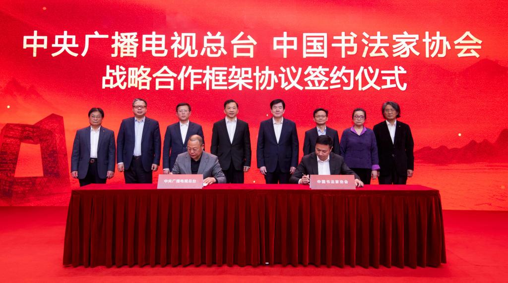 2月22日,中央廣播電視總台與中國書法家協會在北京簽署戰略合作框架協定。中宣部副部長、中央廣播電視總台台長兼總編輯慎海雄,中國文聯黨組書記、副主席、書記處書記李屹見證簽約,並共同為《中國書法大會》節目開機啟拍。