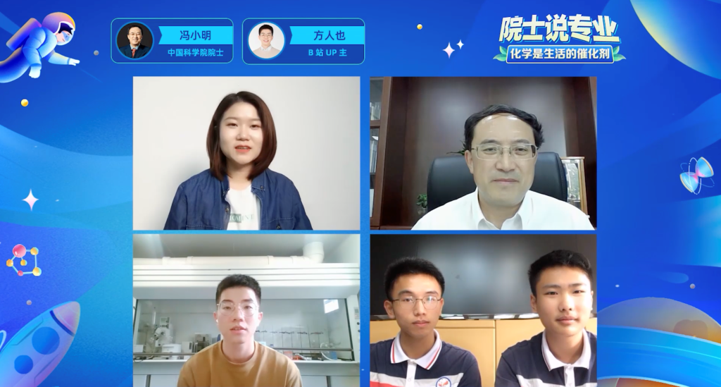 在本次“化學是生活的催化劑”直播活動中,馮小明院士與B站UP主方人也,以及馮小明院士母校四川省武勝中學的學生們展開交流。