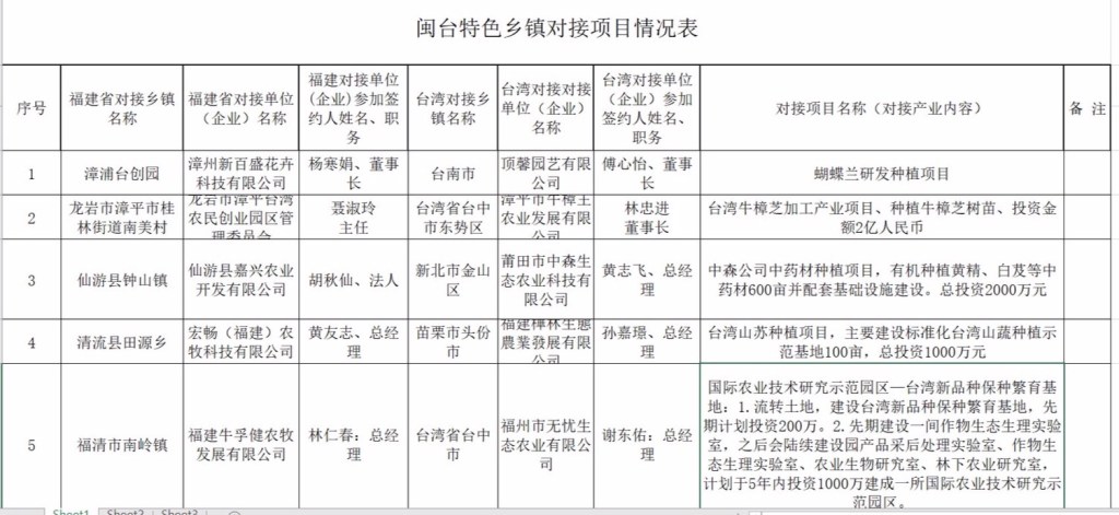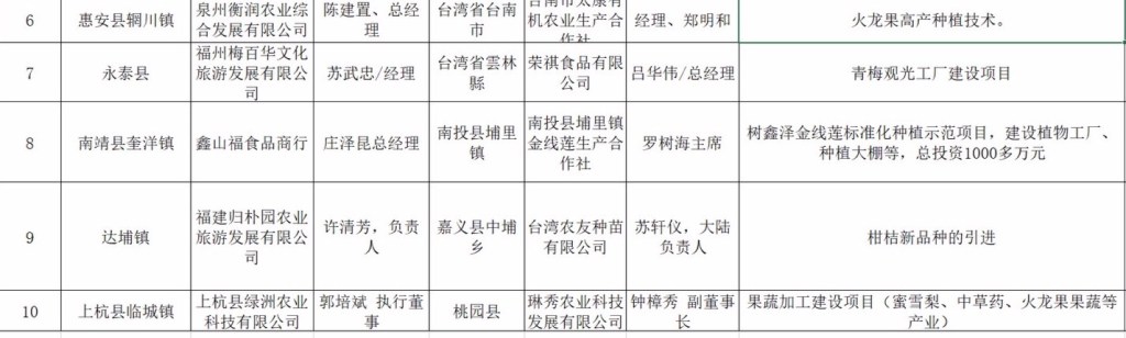 農業農村部辦公廳副主任 蔣建平惠台政策措施不斷完善。2018年以來,國台辦會同我部等29個部門先後出臺了“31條措施”“26條措施”以及“農林22條措施”,不斷拓寬臺胞台企在大陸享受同等待遇的領域和範圍,為臺胞台企來陸發展創造了有利的外部政策環境。二是產業合作平臺穩步拓展。我部會同國務院台辦等部門先後建立15個海峽兩岸農業合作試驗區和29家臺灣農民創業園。經過十多年的建設發展,試驗區和台創園已成為臺灣農民到大陸投資興業的首選地,兩岸農業產業合作的交流平臺和大陸現代農業建設的先行樣板。三是農業合作領域持續深入。越來越多的台農台商在大陸發展農產品精深加工、休閒農業、特色民宿、直播電商等等,很多臺胞團隊特別是臺灣青年,紮根鄉村,深度參與鄉創鄉建,推進當地發展,打造鄉村家園,在產業振興、人才振興、文化振興、生態振興、組織振興實現全領域深入合作。