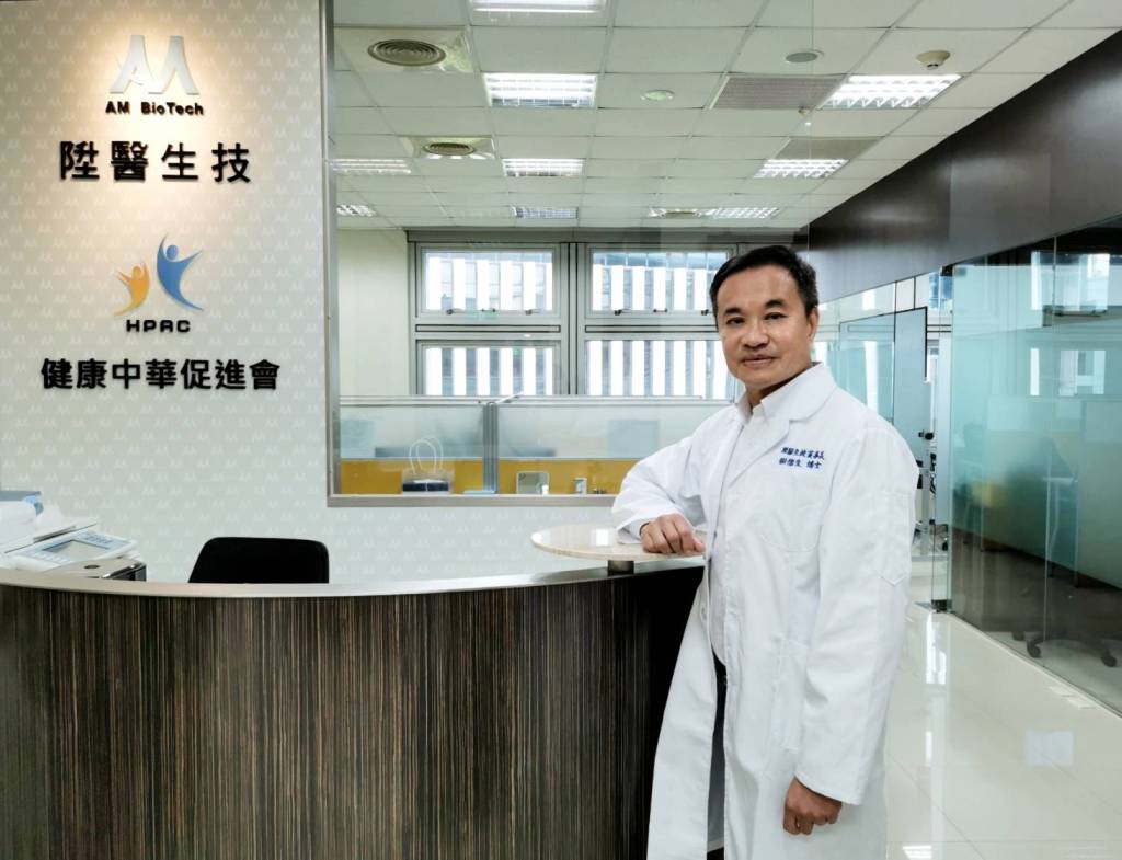 陞醫、江蘇科護寧醫療科技公司董事長謝儒生(下圖)今(26)天下午在台北發表,神奇的生化脤衝外泌體。他說, 陞醫利用獨家專利的萃取和生化脈衝技術,引導幹細胞生產特殊功能的外泌體。經由實驗結果顯示各項細胞活化及增殖效果非常明顯,在撫平細紋、緊緻肌膚、促進膚色亮白與活化毛囊細胞的效果更加地明顯。