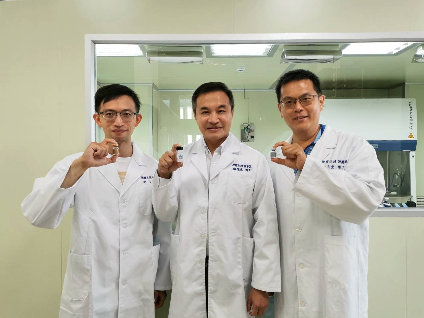 口罩解封的美顏黑科技,陞醫生技董事長謝儒生(中)在台北宣布外泌體取得INCI。