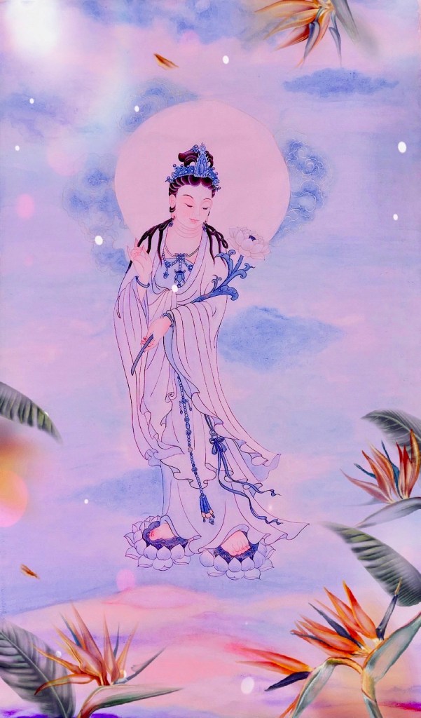 《觀經》曰:以智慧光,普照一切,令離三途,得無上力,是故號此菩薩名大勢至。「大勢至菩蕯」能幫助我們,恢復自性的正能量,祂有這個大勢力能幫助我們,所以名大勢至。輕易就能震動天地的「大勢至菩薩」,可以保護信眾免受邪魔困擾、還會讓你在人生路上一帆風順,事業有成,佛光永照。農曆7日13日適逢「大勢至菩薩」聖誕千秋,素人畫家張美芳(Joanna) 恭祝菩薩萬壽無疆,並祈求菩薩保佑國泰民安、風調雨順、疫情早日平息、百姓幸福安康。