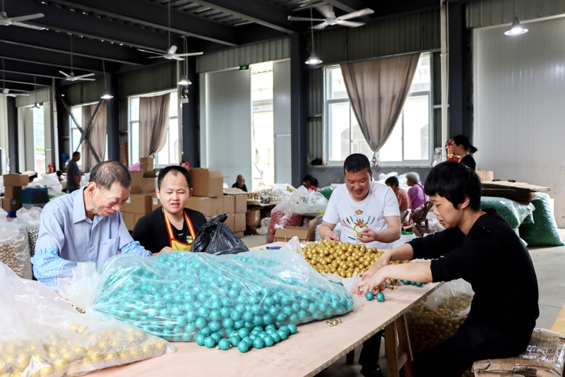 據悉,2021年,臺州添運工藝品有限公司主動參與了寧溪鎮牌門村、嶺家湖村共富工程“小橘燈”共富工坊建設,以委託加工生産工藝品的方式,將原本在車間生産的部分勞動密集型、工序簡單易做的工藝品專人專車外發到村“小橘燈”共富工坊,幫助當地低收入群眾和留守人員就業增收。
