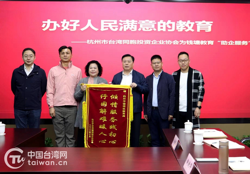 台灣網10月24日訊 近日,杭州市錢塘區召開臺胞子女入學工作座談會,有臺胞代表向區教育局、區臺辦贈送錦旗,對錢塘區為解決臺胞子女入學問題所做的努力表示感謝。