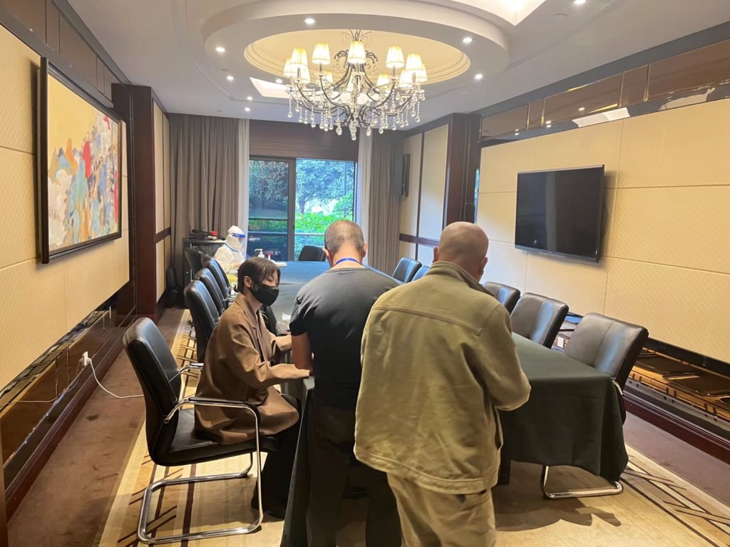 在下榻酒店,主辦方也做足了防疫措施,所有人員進入會場需持24小時的核酸報告,並且測量體溫方可入場。之後每天的活動行程之前,大家都需要持24小時核酸報告,所以六日在下榻的酒店,主辦方也安排醫護人員為大家進行檢測。之后的每一天都会。之後每日都會定時安排醫護人員為大家進行核酸檢測,堅持相響應國家的疫情防控政策。確保本次活動順利進行。(圖 林依穎攝影)