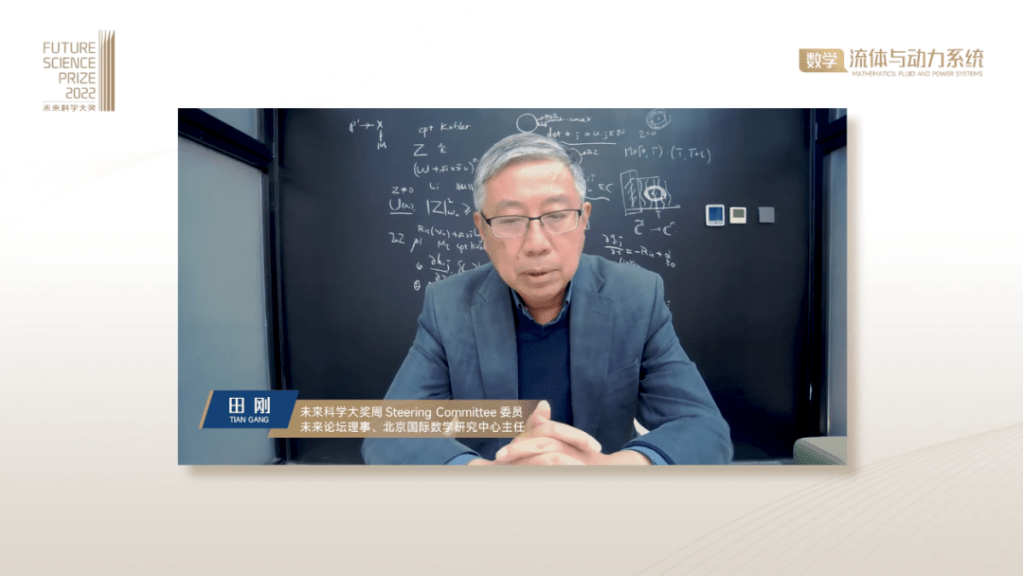 在【數學】流體與動力系統專場中,未來科學大獎周Steering Committee委員、未來論壇理事、北京國際數學研究中心主任、中國科學院院士、美國人文與科學院外籍院士田剛在致辭中分別對演講嘉賓的研究領域與課題進行介紹與解讀。