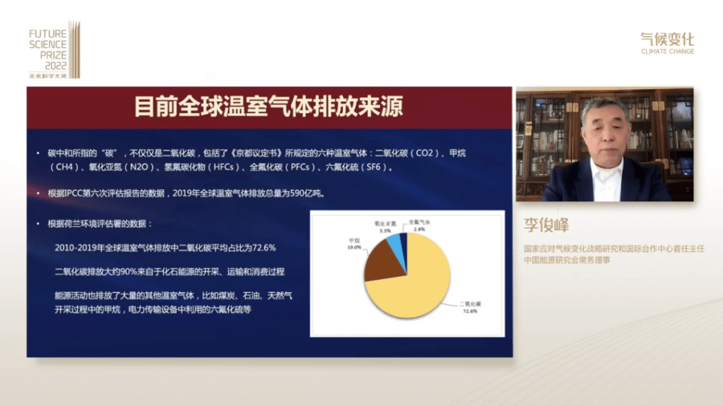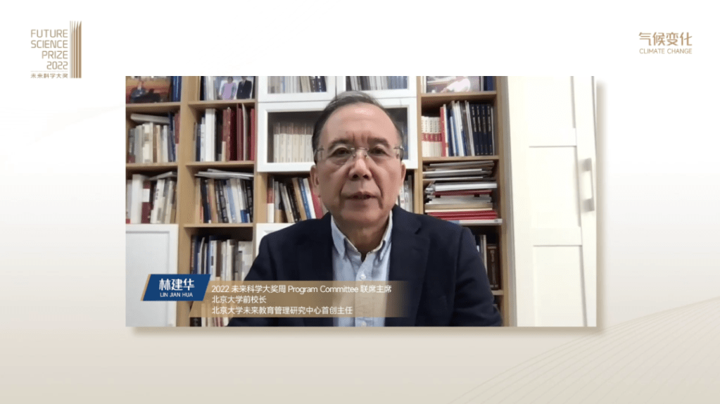 在【氣候變化】專場中,2022未來科學大獎周 Program Committee 2022聯席主席、北京大學前校長、北京大學未來教育管理研究中心首創主任林建華對演講嘉賓進行了介紹:方精雲主要從事植被生態學、生物多樣性、全球變化生態學、生態遙感等方面的研究。他構建了我國第一個國家尺度的陸地碳迴圈框架,揭示了我國植物物種多樣性的大尺度格局及形成機制,創造性地提出了生態草牧業的理論體系並應用於生產實踐。Pep Canadell 擔任“全球碳計畫”的執行主任,他致力於為全球生物地理化學迴圈和生態系統變化提供最全面的理解,從而支持政府、企業和非政府組織的政策發展及變化進程,以及國際氣候變化的談判進程。李俊峰長期從事能源經濟和能源環境理論的研究,先後組織並主持了我國可再生能源法、國家中長期能源規劃的起草工作,參與了國家中長期科技發展綱要、能源法草案、國家應對氣候變化方案等重要文件的研究和起草工作。