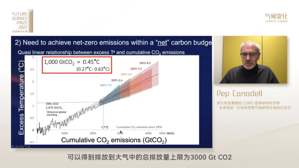 澳大利亞坎培拉CSIRO首席研究科學家、“未來地球”計畫和世界氣候研究計畫執行主任 Pep Canadell,在以《穩定全球氣候的淨零排放之實現——基於地球系統的視角》為題的學術報告中指出,過去從來沒有一項基於實現地球系統的特定狀態的,即管理我們所生活的地球整體,以促進社會和環境繁榮的全球性條約。其目標是:穩定氣候系統,基本要求是溫室氣體源不應大於溫室氣體匯,也就是達到淨零排放。在演講中,Pep Canadell 博士分解了實現淨零排放的要求,包括二氧化碳(CO2)和非二氧化碳排放,自然匯的作用,剩餘的碳預算,達到淨零排放後會發生什麼,並闡述了管理地球系統以避免氣候變化所面臨的挑戰和機遇。