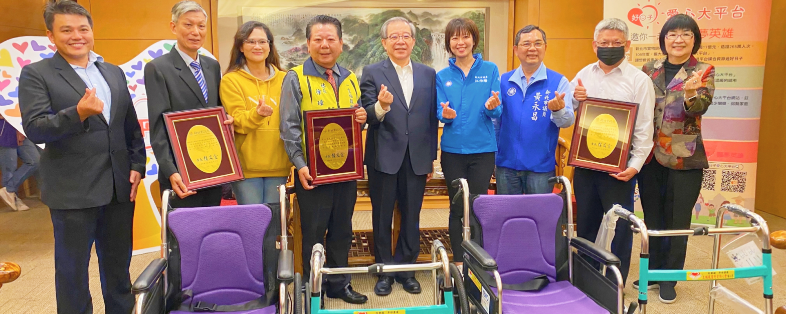 新北市鳳靈慈愛同心會與中華民國新聞記者協會共同號召(新北市愛心大平台)輪椅捐贈,四年來總計已捐贈輪椅630台、及助行器245台,而本次捐贈,由新北市政府秘書長林祐賢代表接受、並頒贈感謝獎牌,所贈之輔具,將由新北市輔具資源中心評估、並免費媒合給有需要民眾,讓捐贈者的善舉發揮極致,帶動更多社會善念投入公益。