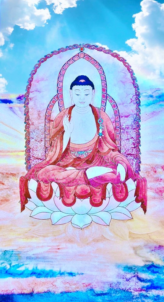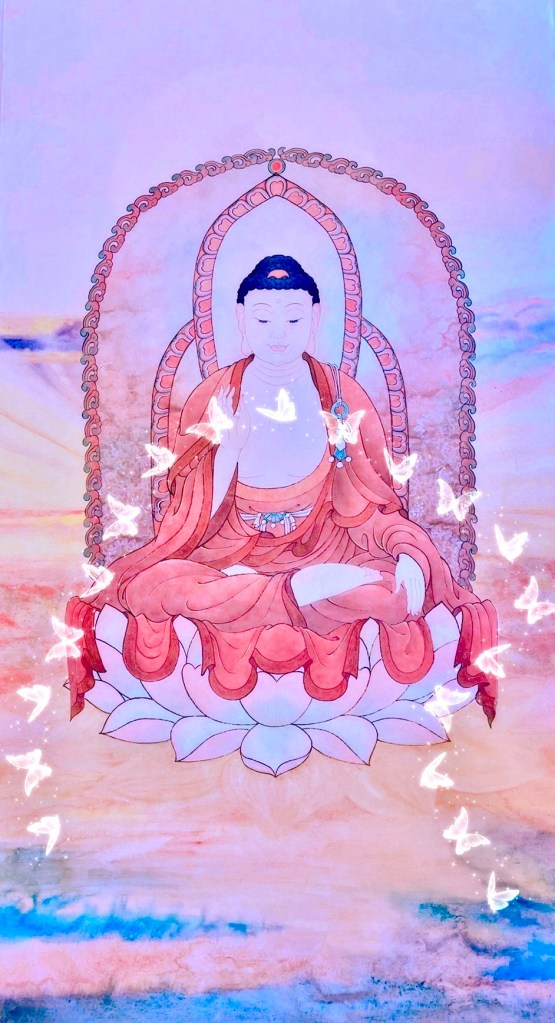 欣逢釋迦牟尼佛成道日,素人畫家張美芳(Joanna)很榮幸分享佛陀作品,僅表對佛陀無限的敬仰跟感恩。歷經2000多年,佛陀博大精深的法門依然流傳於世,嘉惠世人。主圖結合數位有19隻蝴蝶於佛前,寓意佛陀把福慧加被於有情眾生。年輕時佛陀憑著自己的智慧與堅毅的精神,終於證悟「緣起性空」的宇宙人生真相,塵世間六道輪迴所產生的一切苦難,因和緣皆來自眾生自身的「無明」。世間一切存在不過是一種幻覺,但眾生卻把它當作真實,誤認為實有,眾生有我執,就是不能解脫生老病死苦的真正原因。眾生本具佛陀智慧德相,但因妄想執著而不能證得,其實眾生心與佛心,無二無別,本來一體,心即是佛,佛即是心,這就是佛所開悟的道理。