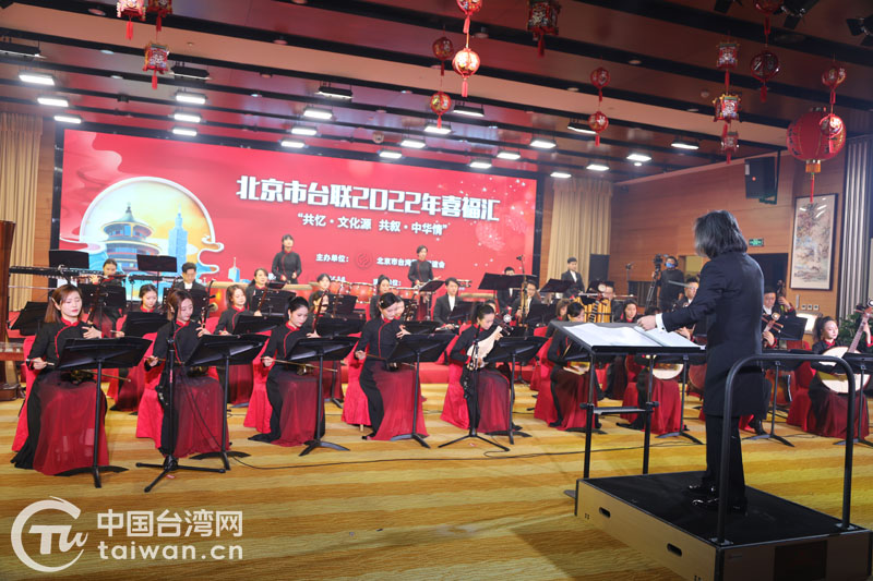 台灣網12月29日訊 12月28日,由北京市臺聯主辦、北京演藝集團承辦的2022年喜福匯——兩岸民間音樂交流活動,分別在北京、臺北兩地以視頻連線方式展開。活動以“共憶文化源 共敘中華情”為主題,北京民族樂團和臺灣長榮樂團音樂家聯袂演奏,相關單位和部門領導、臺灣同胞四百餘人線上觀看音樂會。