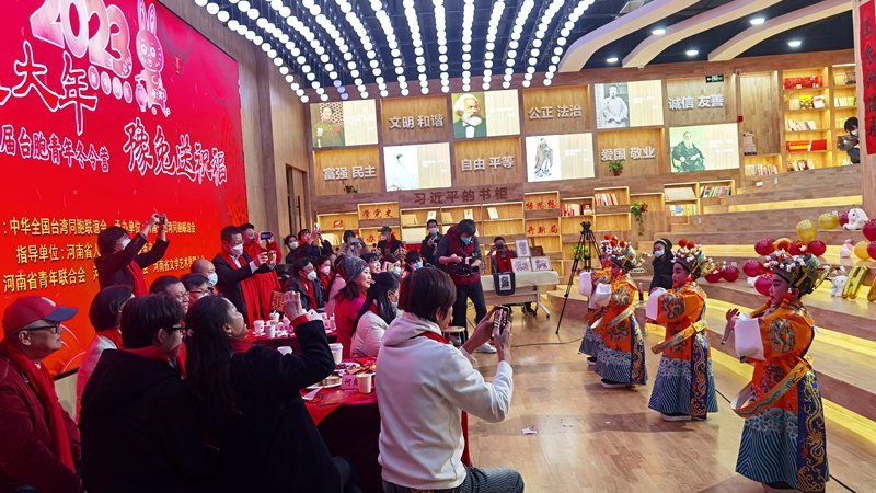 活動現場安排了河南特色的非遺項目體驗及年俗體驗,民俗專家和非遺文化傳承人向參加活動的臺胞介紹了河南過春節的民俗文化和與過年有關的非遺文化歷史,並帶領大家一起體驗。參加活動的嘉賓一起寫春聯、剪窗花、做棗饃、聽豫劇、製作朱仙鎮木板年畫、品香茶、嘗黃河大鯉魚(對應著春聯迎福、窗花納福、花饃聚福、豫劇唱福、門神接福、茶香送福、錦鯉祝福)等,在歡樂喜慶的氛圍裏迎接新的一年。