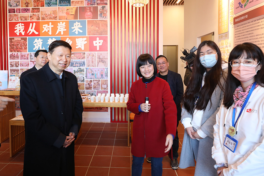 走訪赤土社時,宋濤詳細了解臺灣青年參與大陸社區治理的情況。(台灣網 尹賽楠 攝)