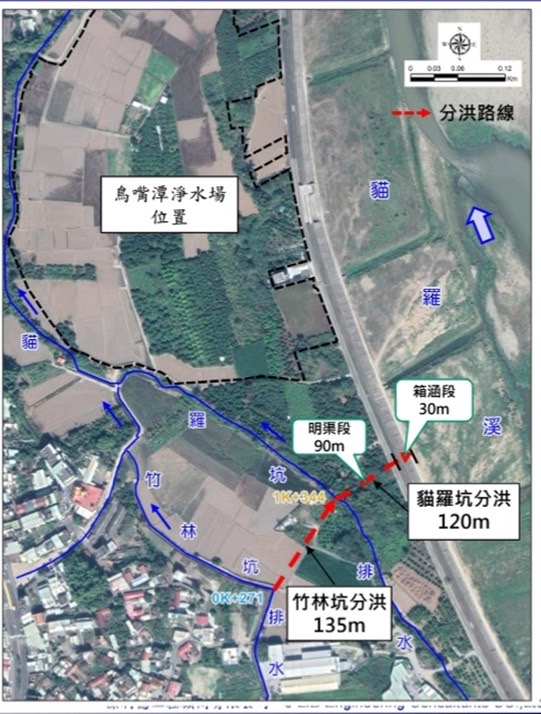 彰化縣政府已經完成「分洪渠道」的公開招標,彰化縣政府理應盡速完成貓羅坑排水「分洪渠道」施工。建議台水公司在「分洪渠道」完工後,鳥嘴潭淨水場才能進場施工,以避免「淹水轉移」至上游範圍(即南側,行政區屬彰化縣芬園鄉)。