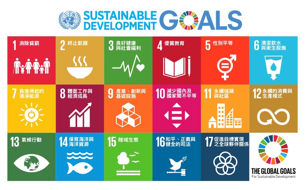 上圖示: 聯合國17項永續發展目標(SDGs)
