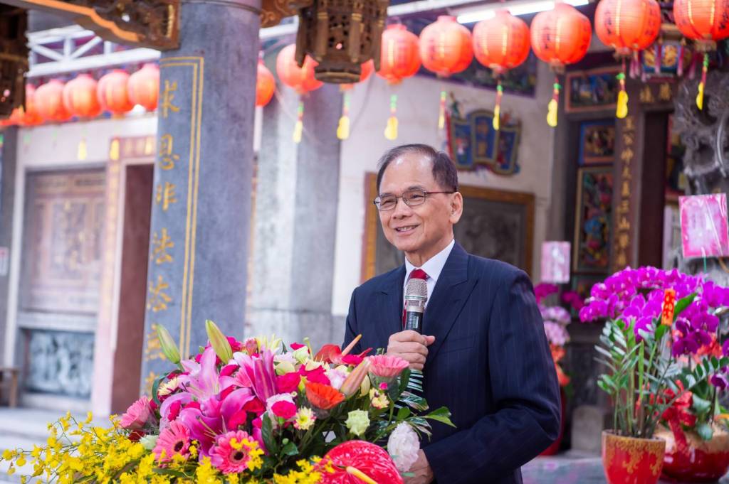游院長致詞時首先向振安宮的各位委員、代表、主任委員、鄉親等道早安,並表示相當高興回到故鄉宜蘭,其許多有關社區營造、有機農業法等政策上的發想,都是源自於故鄉宜蘭。