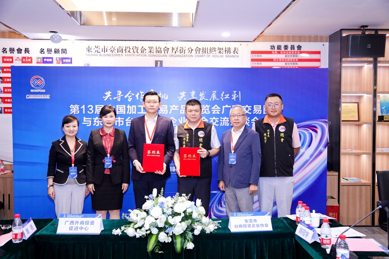 台灣網5月16日訊 第13屆中國加工貿易産品博覽會日前在廣東舉行,廣西有關部門組團參加活動,並與東莞市臺灣同胞投資企業協會舉行“共尋合作商機 共用發展紅利”交流座談會。