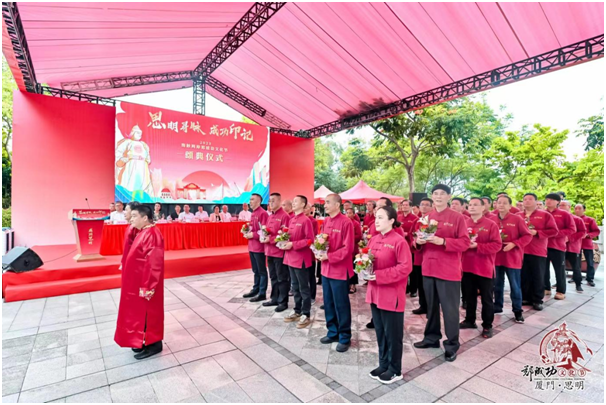 頌典儀式上還特别邀請到來自台灣地區的九天民俗技藝團帶來開場表演《成功戰鼓》以及與思明區文化館共同創編的鼓舞《祈願洪福》,通過活動内容與形式的創新表達,點亮中華優秀傳統文化生生不息的生命力,幫助兩岸民衆更好地感知和理解鄭成功文化精神。