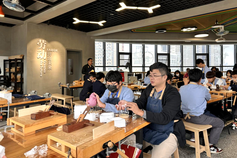 上圖:臺灣師生體驗刨花製作(成都市臺辦供圖)