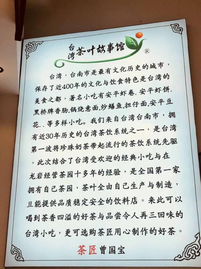 从曾董事长的台湾茶叶故事馆里的墙壁上,挂着茶王的持别奖和金奖和龙岩市政府龙头企业等奖,亦得到各方的肯定,从台湾茶商,看好茶叶产业能前景 无量,即来到中国种植茶、制茶、和管理着手,也因长期研究与运用「自然农法」,成功受到好评常受奖项。