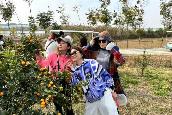 臺胞姐妹體驗採摘(武漢市臺辦供圖)