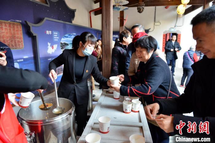 9日,正值農曆正月廿九,福州迎來一年一度的“拗九節”,福州三坊七巷臺灣會館瀰漫著濃郁的粥香,兩岸同胞齊聚於此,一同品嘗“拗九粥”。 中新網記者 呂明 攝