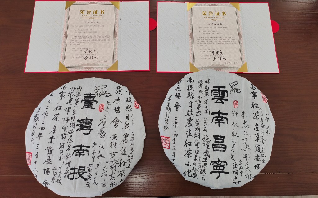 友好合作協定及雙方簽名紀念茶餅