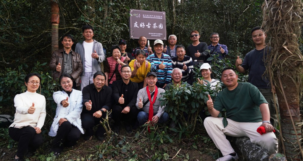 兩地茶人品鑒茶會結束後在“千年茶王樹”下合影留念