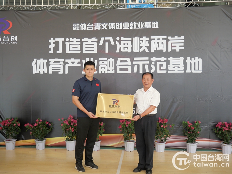 授牌儀式(廈門湖裏區臺辦供圖) 台灣網6月26日訊 昨天上午,廈門湖裏區第九家臺青基地——融體臺青創業基地,在燦坤文創園區正式揭牌成立!這也是廈門首個體育主題臺青基地。該基地是一家專門從事體育産、學、研相結合的專業性體育基地,目前已入駐20餘名臺灣青年。
