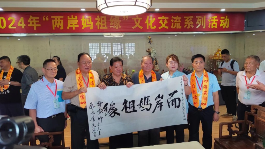臺灣宮廟代表民眾在欣賞天后宮獨特的媽祖文創品后,並體驗天津非物質文化遺產的技術,分別體驗剪紙、宋代點茶和插花技術等。