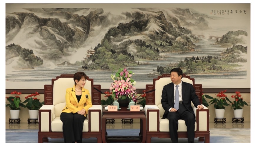 中共中央臺辦、國務院臺辦主任宋濤7月8日在杭州會見中國國民黨前主席、中華青雁和平教育基金會董事長洪秀柱一行。