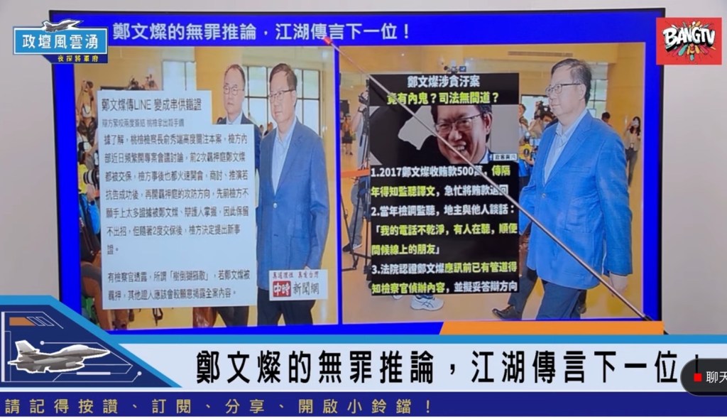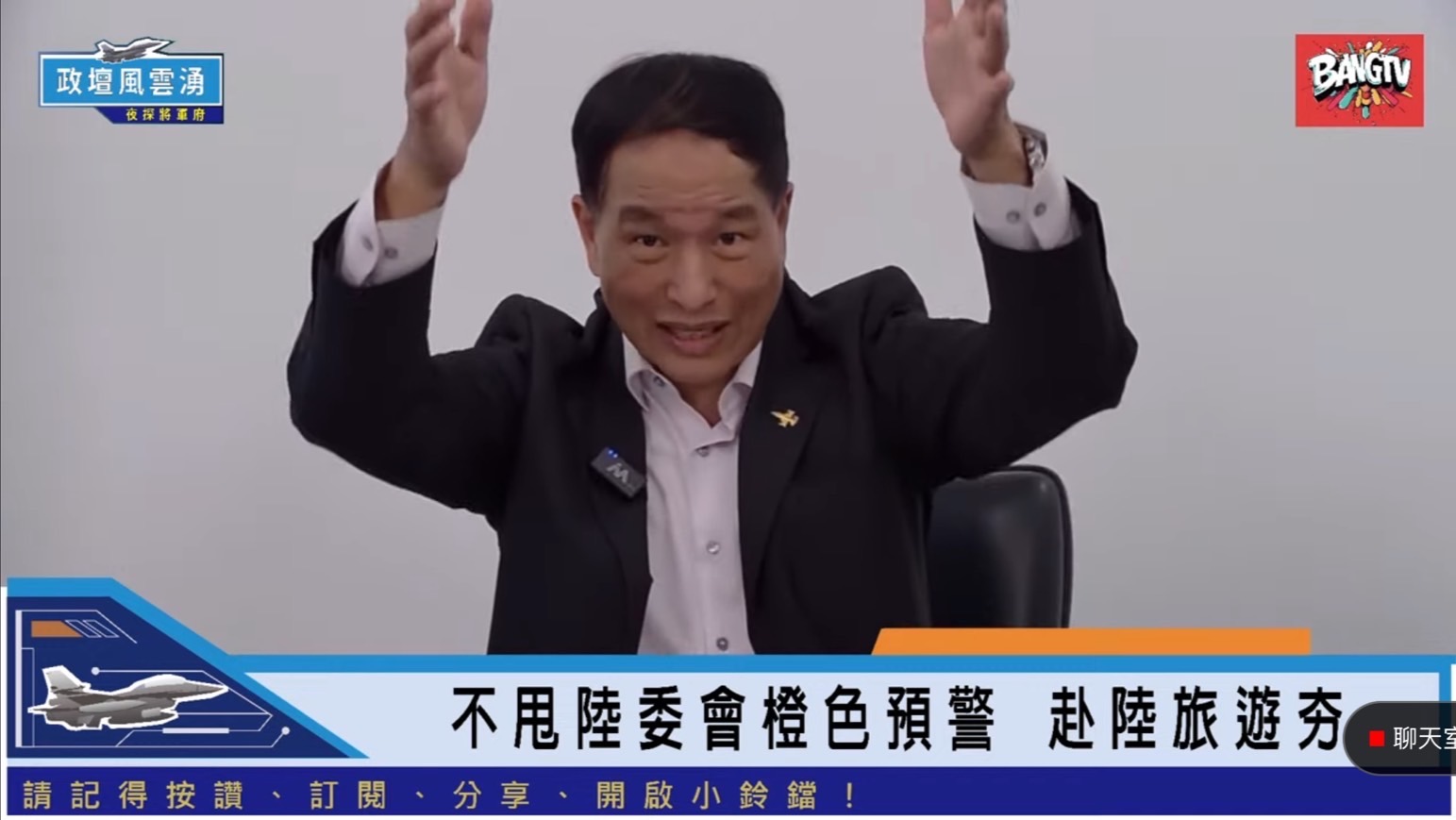 「政壇風雲湧 夜探將軍府」節目於每周五晚上八點在YouTube BANGTV直播