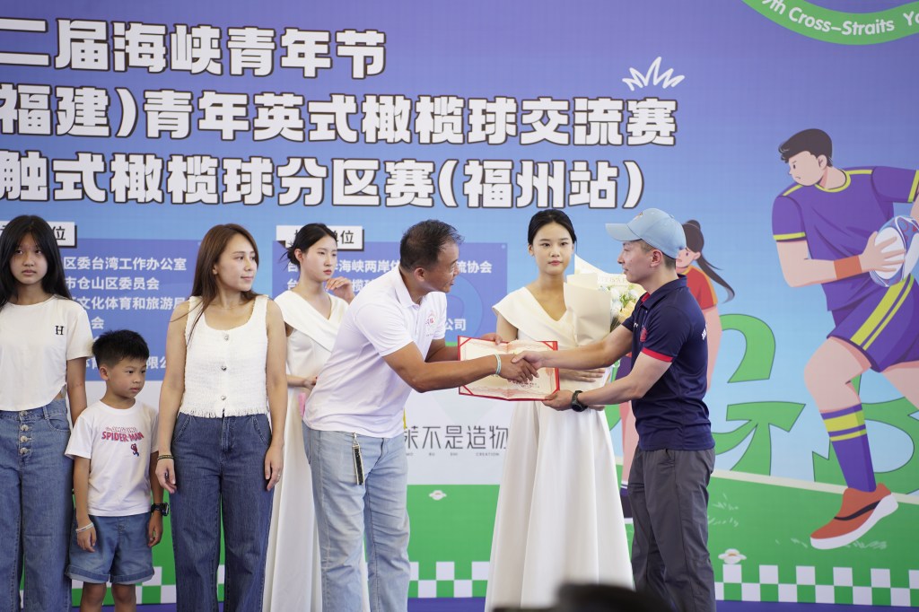 本屆賽事在兩岸交流上繼續取得進展。桃園市立石門中學(上圖)等台灣中小學隊伍首次來榕參賽,並與大陸校園橄欖球隊伍結對交流。來賓們還共同見證了福建省橄欖球協會向台灣知名教練康永明頒發校園推廣顧問證書。康永明曾擔任中華台北橄欖球青年隊教練。他看好大陸的發展,今年帶著全家來到福州定居。未來,他將繼續深耕校園橄欖球體育運動,當好兩岸橄欖球人的橋梁。越來越多的台灣優秀橄欖球教練員、運動員,正來到福州就業創業,在兩岸體育文化交流中收穫滿滿。