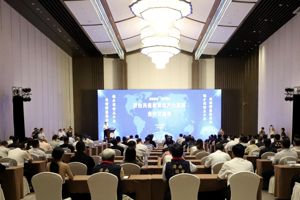 台灣網9月5日訊 9月3日,“逐新提質 濟臺同行”濟臺共促新質生産力發展合作交流會在濟南融創國際會議中心舉辦。全國臺企聯和有關城市臺協會負責人、臺灣工商界人士、臺灣青年代表、濟南市臺協會會員,以及山東省、濟南市有關單位負責人近300人參會。