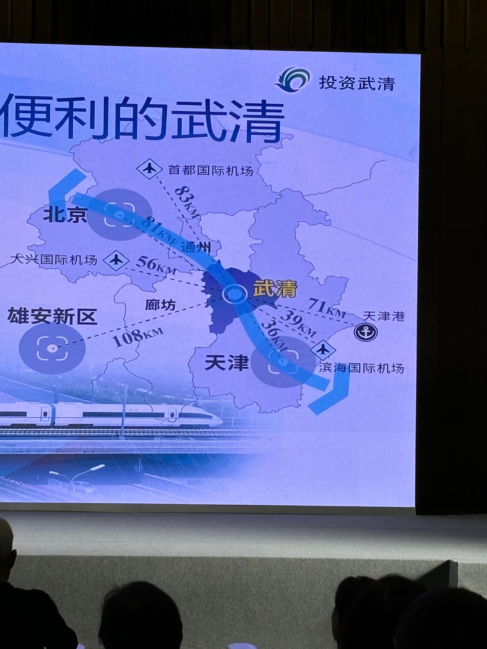京津冀辦公室副主任白向東(市協辦),全面協同,深度融入的工作合力,同軸化、政策支持,同城化聚勢見效,打造北京海上門戶概念,三地結合,共促區域產業的成龍配套。隨後由區投資促進局張鵬介紹武清區的投資環境分析。