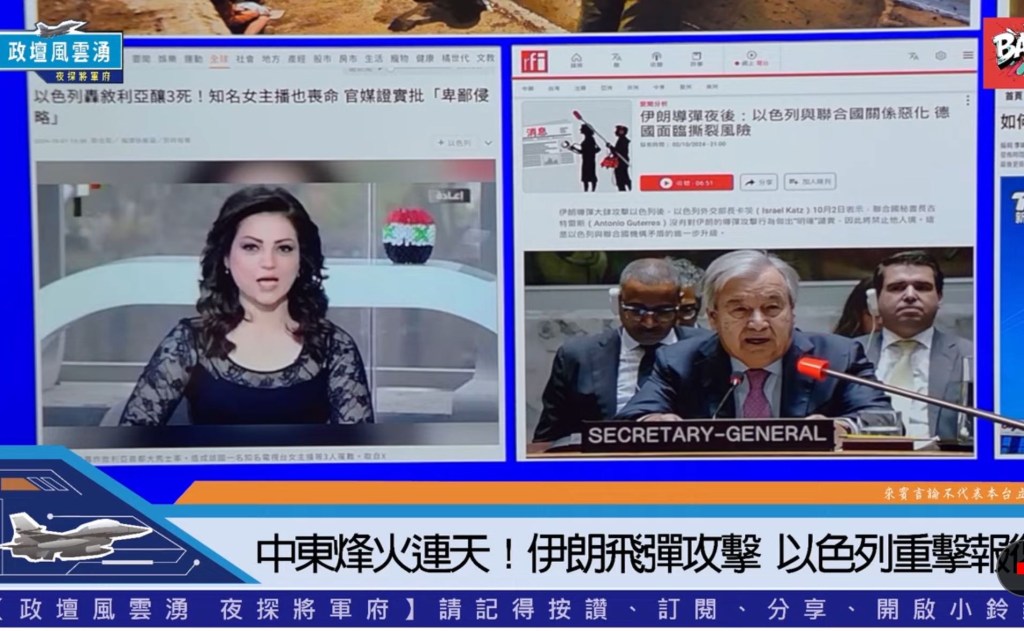 最後,兩位嘉賓對中東局勢展開討論,特別是以色列和伊朗之間的衝突,張將軍預言以色列展開對 黎巴嫩地面轟炸,不比加撒走廊平原,黎巴嫩依背卡山脈谷地屏障,兩軍必有傷亡。何豪毅是以色列及伊朗僅在空中飛彈的較勁,地面對戰的機會少。