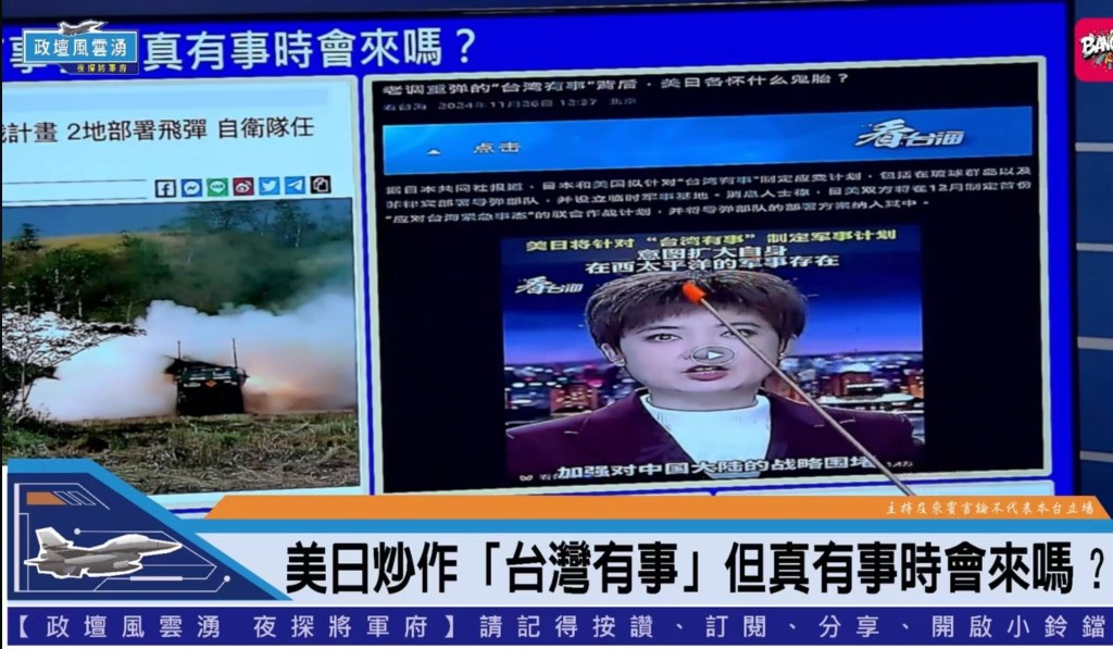張將軍對於美日聯合制定「台灣有事」作戰計畫,聲稱保障台灣安全,但真有事時是否會實際援助,仍讓外界存疑。張將軍引用陸官媒「看台海」評論,是意圖擴大西太平洋勢力。