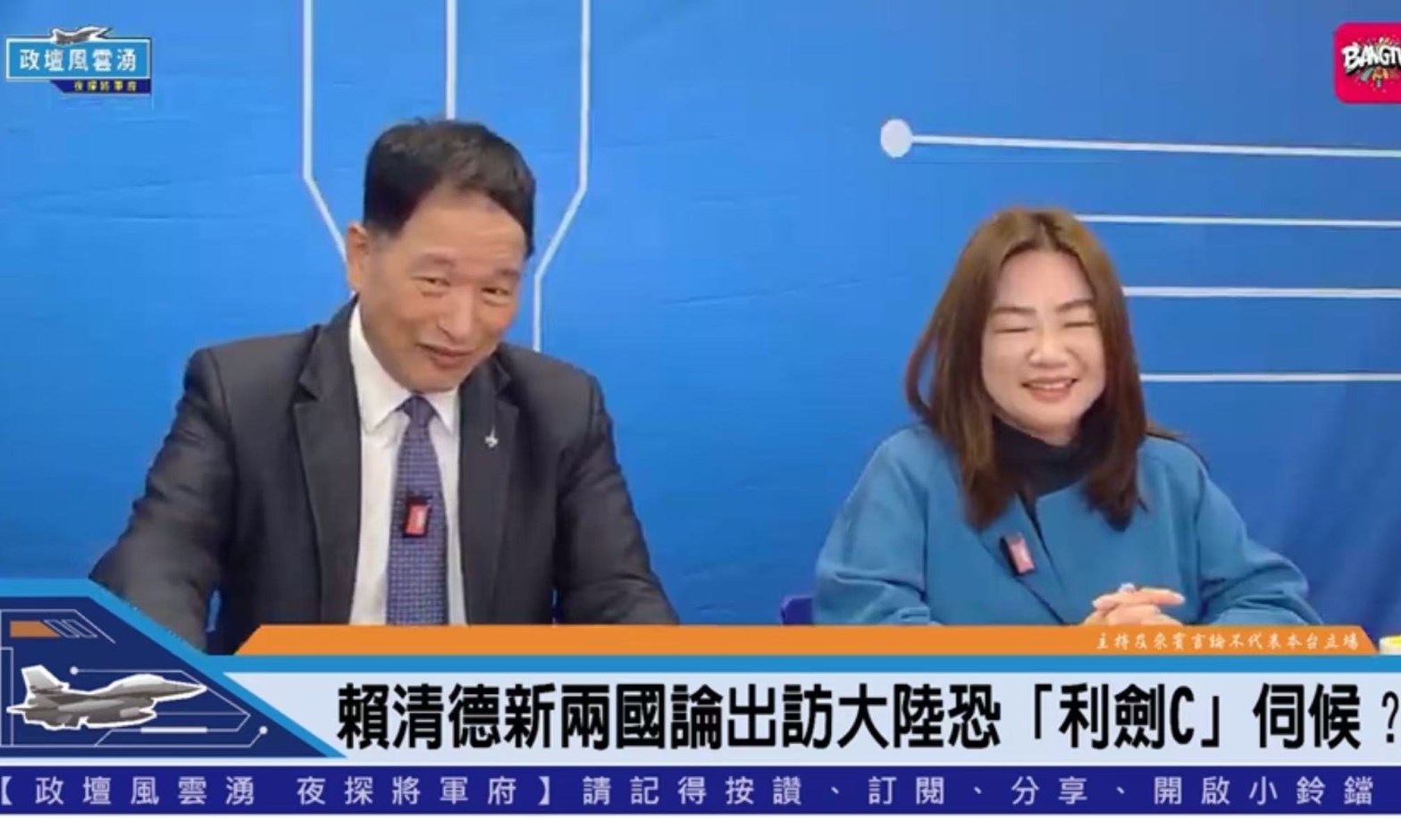 《政壇風雲湧 夜探將軍府》 第二十二集昨(29)晚由主持人張延廷將軍特邀國民黨立委馬文君,共同解析執行黨意識形態失去台灣的實質利益,當前四大敏感議題,聚焦台灣國防、外交及經濟政策的最新發展。