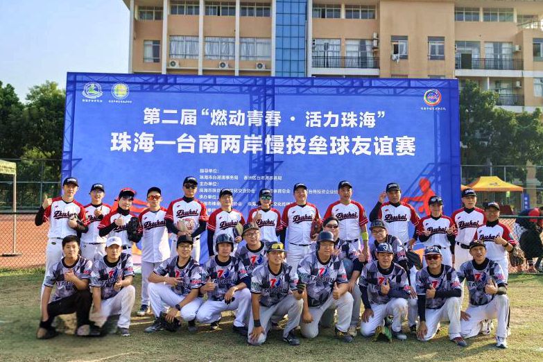 第二屆“燃動青春 活力珠海”珠海-臺南兩岸慢投壘球友誼賽。(台灣網發)
