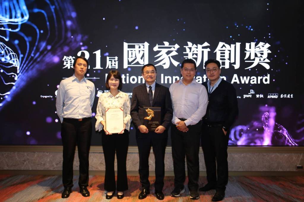 ↑圖說:陞醫生技榮獲第21屆國家新創獎,董事長謝儒生(中)博士代表領獎。